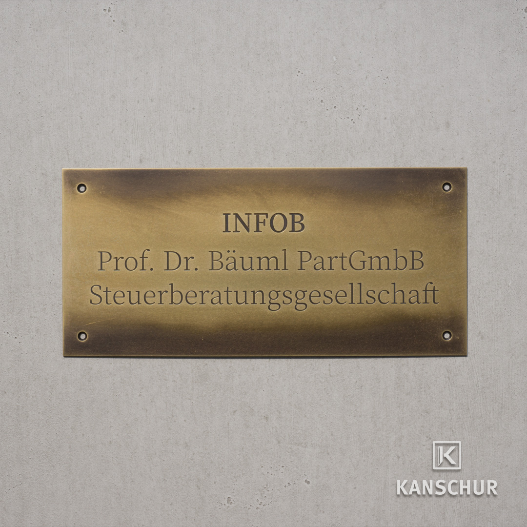 So einzigartig wie Ihr Geschäft, Büro, Hotel oder Kanzlei - das Eingangsschild ist Ihr Aushängeschild. Umso wichtiger ist für den ersten Eindruck ein gut gefertigtes Schild. Ein Messingschild wird häufig für die Praxis, den Rechtsanwalt oder den Steuerberater angefertigt. Das repräsentative Firmenschild wird nach Ihrem Maß und ihren Vorgaben geschaffen. So variabel wie die Größe ist, ist auch die Form, Gravur und Oberfläche jedes einzelnen mit handwerklichem Geschick geschaffenen Schildes.